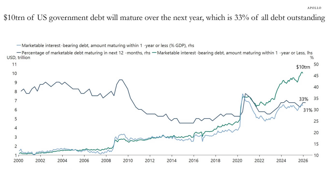 Roughly $10T of existing U.S. government debt needs to be refinanced in the next year. Add in a $1.9T deficit and $2.5T in corporate borrowing, and you’re looking at a flood of supply hitting the bond market.