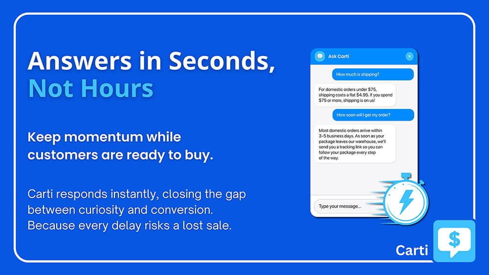 Carti plugs your checkout leak by answering questions, removing friction, and guiding visitors to purchase. It turns high-intent shoppers into incremental revenue.